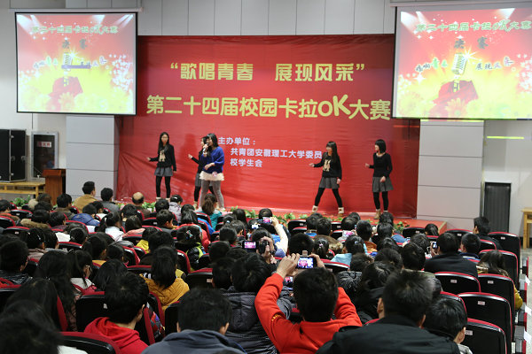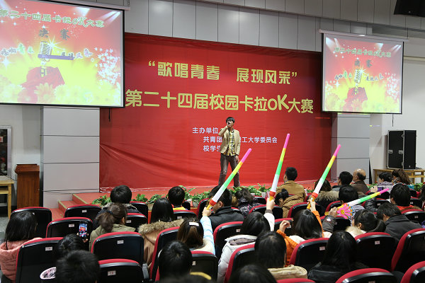 12月21日下午,由校团委、校学生会联合举办的“歌唱青春 展现风采”第24届校园卡拉OK歌手大赛决赛在北校区图书馆举行。来自全校各学院的近500名师生一起观看了精彩的比赛。离退休工作处、党委统战部、校团委等有关部门负责人与大学生艺术团指导老师亲临赛场并担任大赛评委。