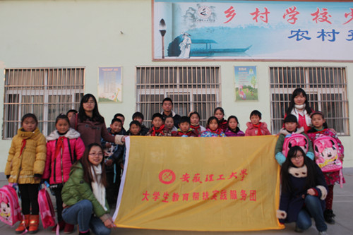2013年暑假,外国语学院大学生暑期“三下乡”社会实践活动服务队来到蒙城县双涧镇中心小学,为那里的留守儿童们开展义务支教活动,给孩子们送去关爱。