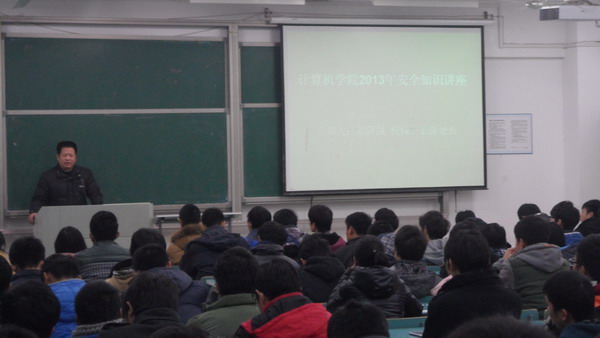 12月23日晚,计算机科学与工程学院在北实202教室举行冬季安全知识讲座活动,校保卫处副处长刘训强老师应邀担任主讲人。讲座由学院团委书记胡彪主持,学院2013级辅导员、全体班委及宿舍安全员到会聆听了讲座。