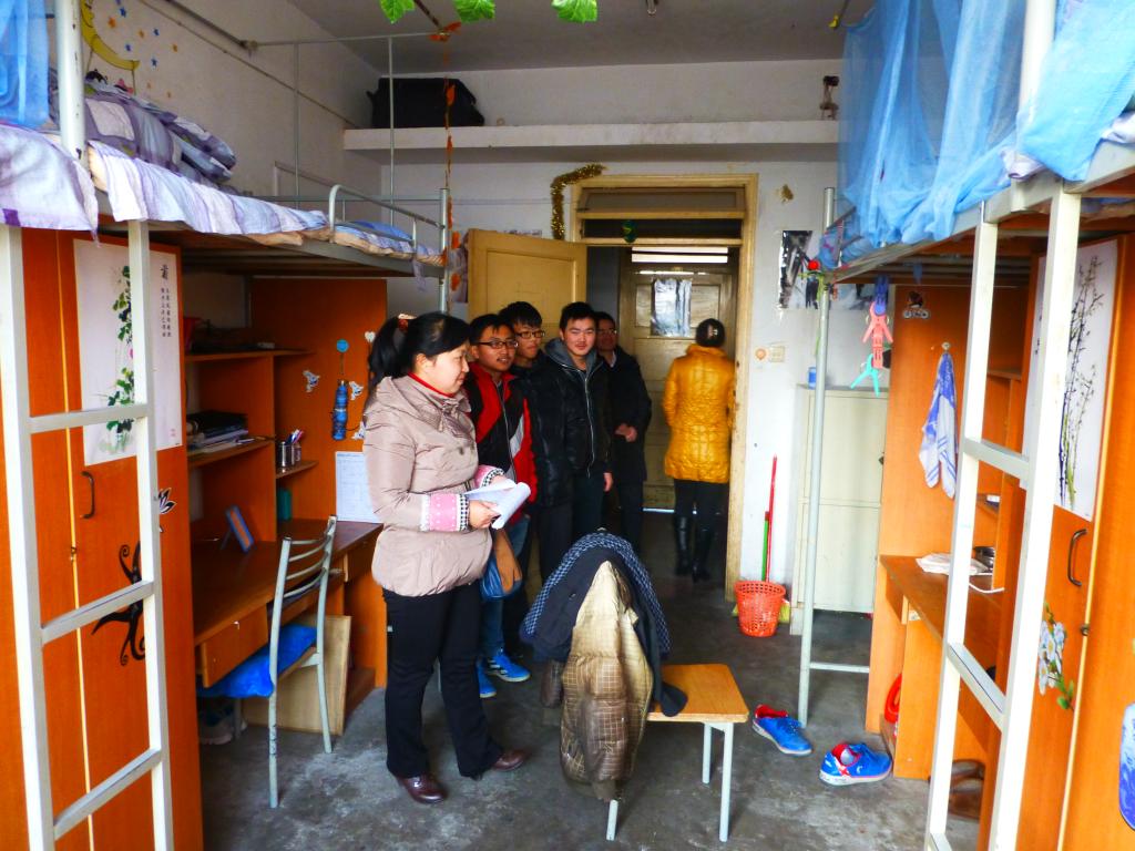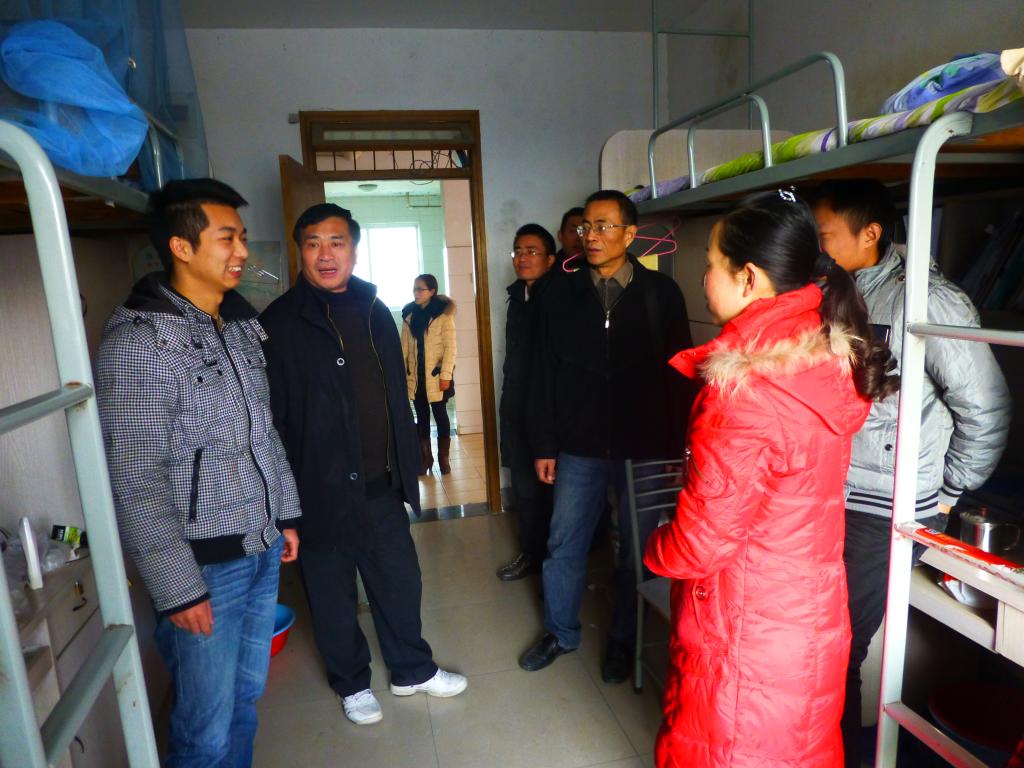 12月30日,理学院党委书记张宣传、副院长唐建华、副书记李勇及全院辅导员、新生班主任一行深入学生宿舍开展安全卫生大检查活动。