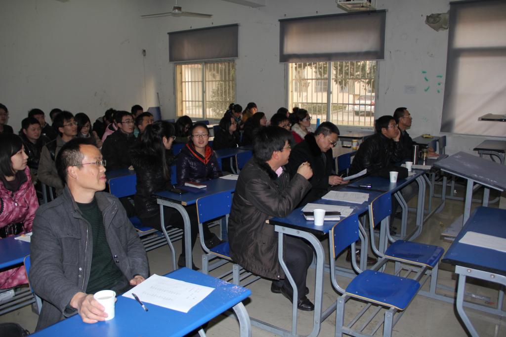 1月3日下午,理学院在理教1和理教2教室举行了应用数学专业2011级研究生学位论文中期检查报告会。学院党政领导、研究生导师及全体研究生参加了会议,报告会由副院长方贤文教授主持。