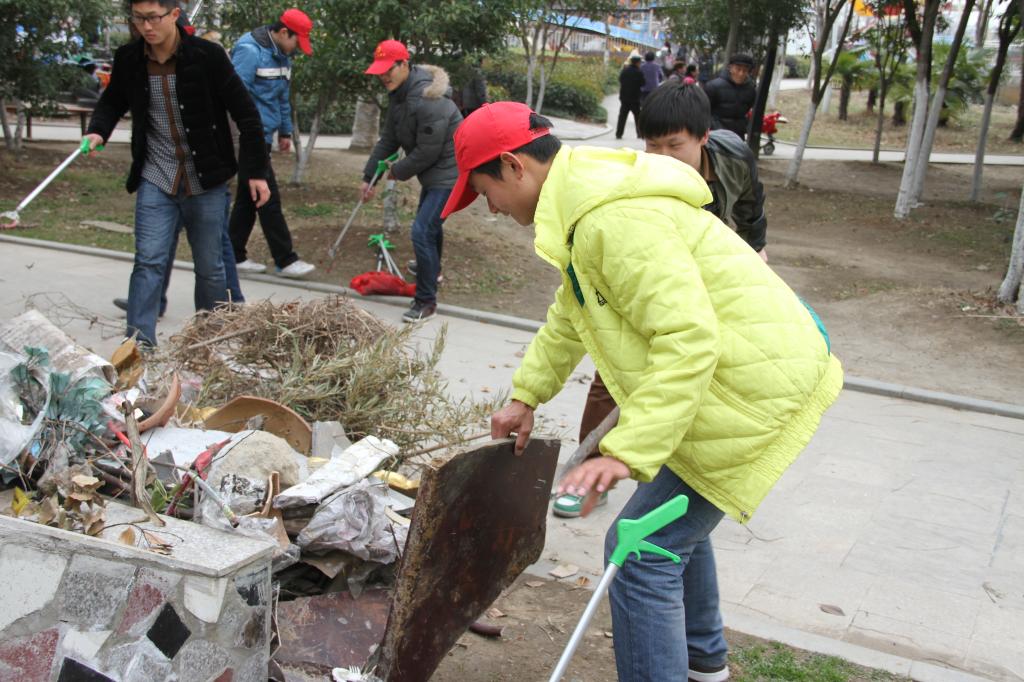 志愿者到达龙湖公园,与公园负责人联系之后得知,经过一个冬天,公园里现在有许多枯枝需要修剪整理,许多地方也成为了垃圾死角,因此需要大量的人力来帮忙清理公园,迎接春天的到来。针对此种情况志愿者们立刻在公园负责人的指引下开始了清洁龙湖公园的行动。在公园各处进行清扫垃圾活动,哪怕是再小的烟头也不放过;帮助修剪枯枝的志愿者们也在工作人员的指导下开始熟悉了工作。当两个小时候的的清洁活动结束后,志愿者的热情和付出得到了公园工作人员和过往市民的一致赞扬。