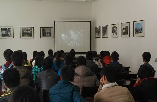最后,志愿者们在万人坑教育馆里静静地观看纪录片,沉重的氛围在放映厅里弥漫……