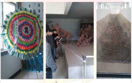 此次活动以“牢记革命历史,珍爱和平社会”为主题。志愿者们携带了花圈,纪念那些无辜牺牲的矿工,表达沉重的悼念。现场,志愿者们参观了纪念遗址,一幕幕惨绝人寰的画面,一具具惨白的尸骨,大家心中民族血液开始沸腾。走进纪念厅,看到13000的数字,大家心情愈加沉重起来。在讲解员的带领下,志愿者们感受到了当时矿工们在日本人摧残下的艰苦生活。在搜身关,点灯关,交牌关等关口,那一个个栩栩如生的雕塑,矿工们在日本人和宪兵的欺压下,过的是生不如死的生活。大病房,名为大病房,实为停尸厂,多少矿工病倒在这里,墙上的画面中,一具具尸体,毫无次序的摆在那里,然后又被丢进坑中。在大坑里掩埋着劳动人民的累累白骨,在日军侵华时期屠杀和奴役万名矿工的罪恶遗址,也是日寇掠同胞的历史见证。