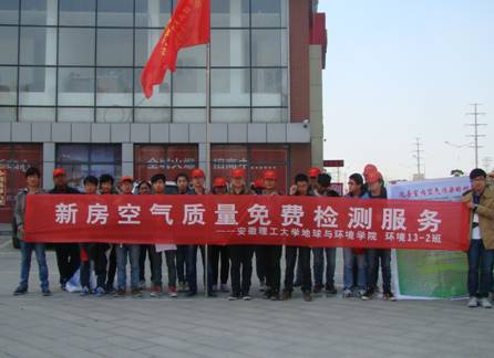 3月15日,地球与环境学院大学生环保志愿者来到淮河新城、上品印象等小区,结合所学专业知识,利用专业检测仪器,为居民新装修住房做空气质量免费检测志愿服务。