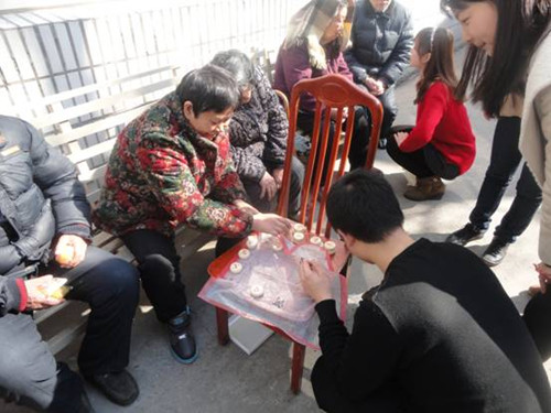 到达敬老院后,同学们先去各个楼层的房间里逐一探望老人们,帮助他们整理内务、打扫卫生。同学们还给老人们送去了精心准备的水果、零食、象棋、扑克等小礼物。礼物虽轻,但却代表了同学们一份小小的心意,老人们感受到了大学生们捎来的温暖,脸上露出慈祥的笑容。志愿者们还坐下给老人捶背、揉肩,陪老人下棋、聊天,嘱咐他们注意身体,和谐的场面在明媚的春光里倍显温馨。