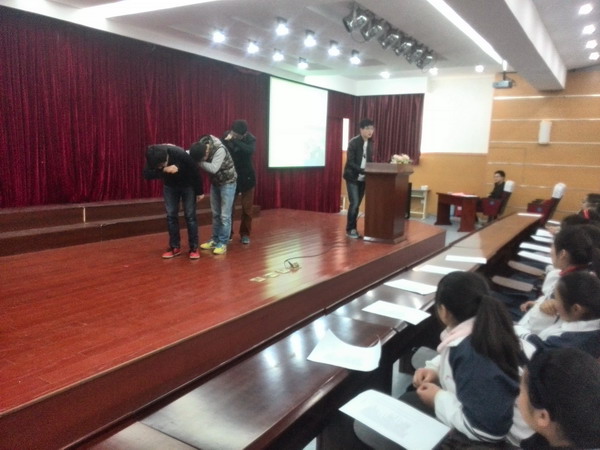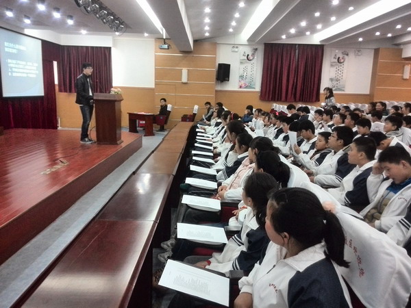下午,志愿者们准时来到龙湖中学民生校区,在相关工作人员的带领下来到了龙湖中学报告厅。在历时一个半小时的讲座中,主讲人张思齐同学结合PPT课件向同学们详细地讲解了有关交通、防火、防电、防盗、防溺水以及预防校园暴力等多方面的安全知识,志愿者们还通过现场模拟的方式来给同学们进行演示。图文并茂、理论结合案例、生动活泼的讲解得到了老师、同学们的认可,大家听得津津有味。最后,志愿者们还向同学们发放了安全主题调查问卷,以便获得更具有针对性的意见或建议,为今后更好地开展此项志愿者活动做指导。