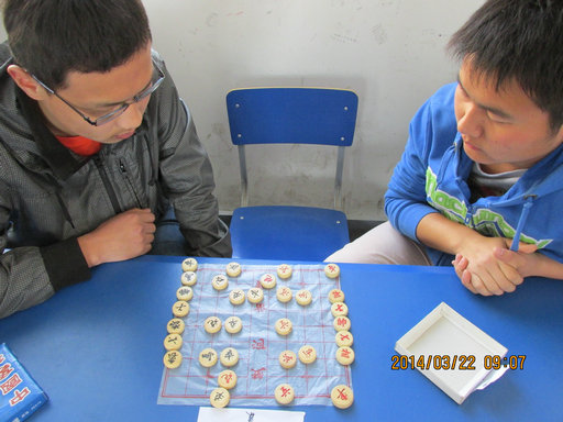 本次棋艺大赛由象棋和五子棋两部分组成,采取淘汰制的方法,选手们进行了激烈的棋盘角逐。3月22日,进行的是第一轮的初赛,分上午和下午两批进行比赛。选手们抽签选择对局选手。获胜的一方进入第二天的复赛。复赛胜出即可进入最后的决赛。