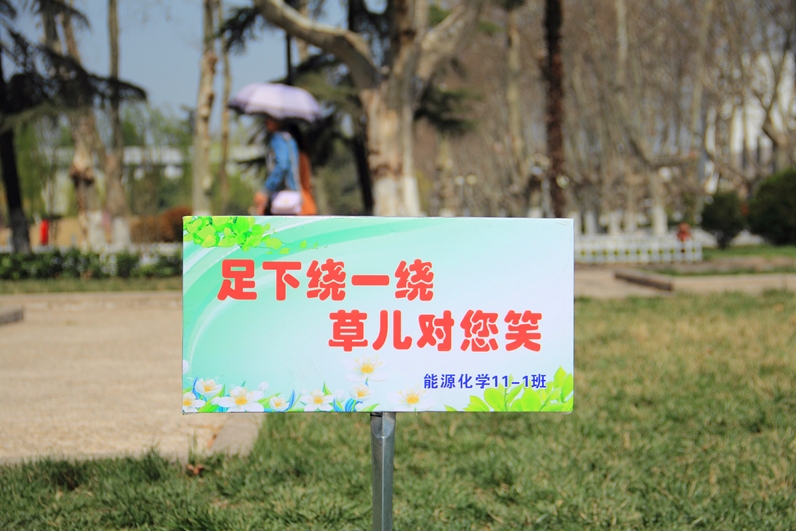 一块块醒目的标语牌,都是草儿成长中的绿色保护伞;一行行话语,都是饱含能化学子“护绿爱绿”的责任感。此次活动,美化了校园环境,提高了全院学生的环保意识,传播了生态文明观念。