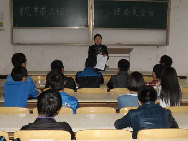 3月29日下午,机械工程学院在北3208教室召开了低年级心理委员会议,2012级、2013级各班心理委员和辅导员参加会议。会议由2012级辅导员郑孝莲老师主持。