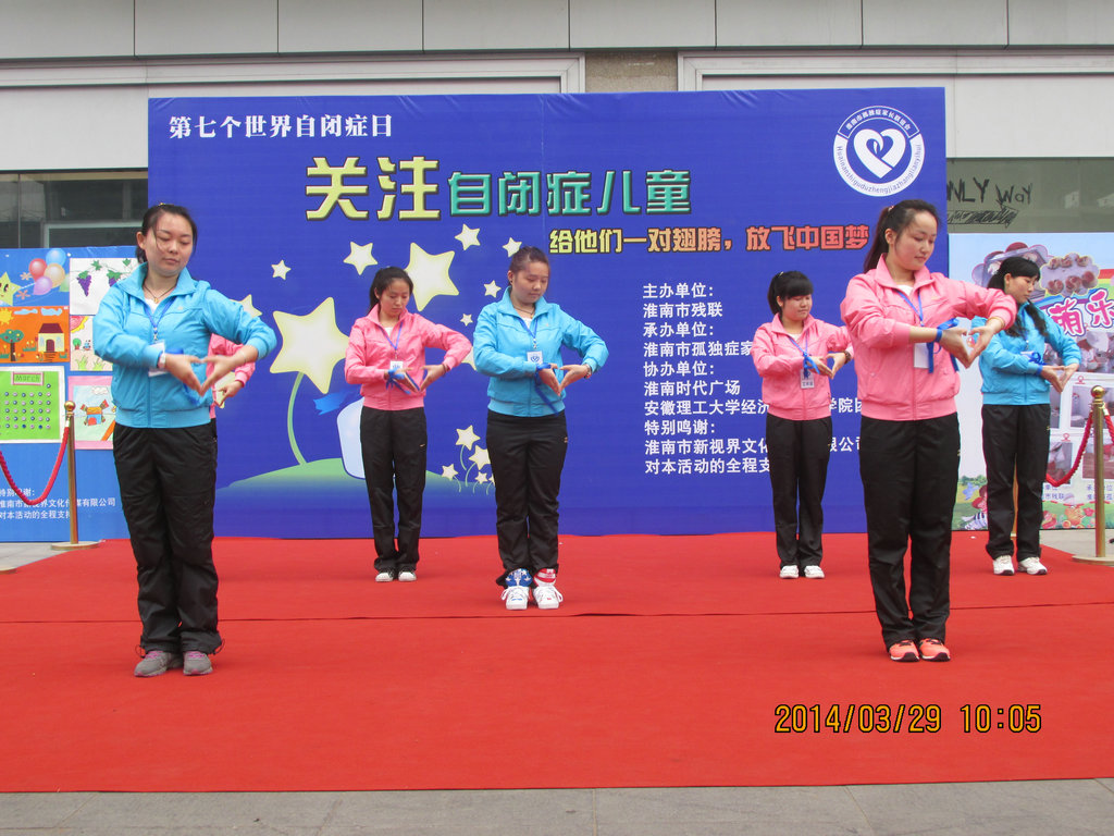 3月29日上午,在即将到来的4月2日世界自闭症日前夕,淮南市孤独症家长联谊会携手安徽理工大学经济与管理学院院学生会在淮南市田家庵区时代广场举办了以关爱自闭症儿童为主题的舞台表演。出席本次活动的嘉宾有淮南市民政局局长杨杰等人。
