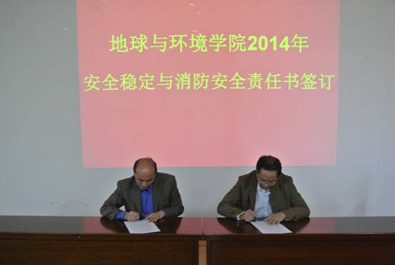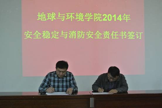 4月2日下午,地球与环境学院组织签订院内各层次安全责任书。院领导、各系主任、院办各室负责人、学生辅导员参加了签定仪式。