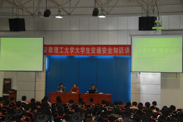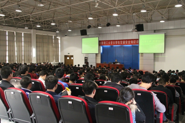 为进一步增强同学们的安全意识和法制观念,杜绝、减少交通事故,4月2日下午,保卫处、学生处联合邀请田家庵区交警大队曹金山警官在北区图书馆报告厅为同学们做了一场生动的大学生交通安全知识讲座。