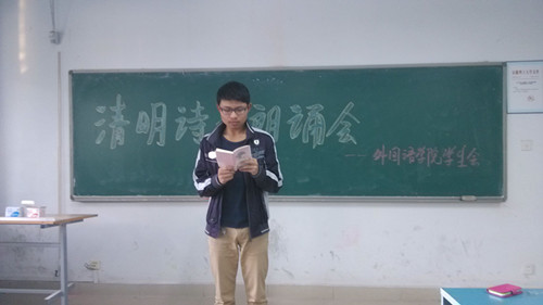 为加强学生对中国传统节日——清明节的认识和理解,外国语学院在学生中广泛开展了诵读清明诗词活动。学生以经典诵读、绿色缅怀的方式,在一片朗朗的诵读声中,再现了踏青、插柳、放风筝等传统活动,体会诗歌中蕴含的清明佳节的历史韵味,表达思念和亲情,讴歌中华民族的英雄,激发广大学生的民族自豪感,引领健康向上的精神风貌。
