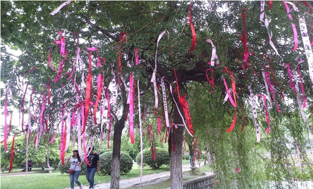 活动分凝聚爱、表达爱、传递爱三个环节进行。同学们在志愿者的带领下,在彩色丝带上写下了对母亲的祝福和感谢寄语,凝聚对母亲的祝福文字随着丝带一起被挂在了爱情湖畔的小树上,激发更多人的感恩之心。随后,感恩母亲诗会开始,“没有历史史诗的撼人心魄,没有风卷大海的惊涛骇浪,母爱就像一首深情的歌,婉转悠扬,浅唱低吟。想起了母亲,志向消沉就会化为意气风发……”一首首诗表达了学生们对母亲的感谢之情。同学们号召把这种母爱传递,路过的同学纷纷驻足,拿起手机当场打电话、发短信问候母亲,就是那一句“我爱你”,让母亲倍感温暖。