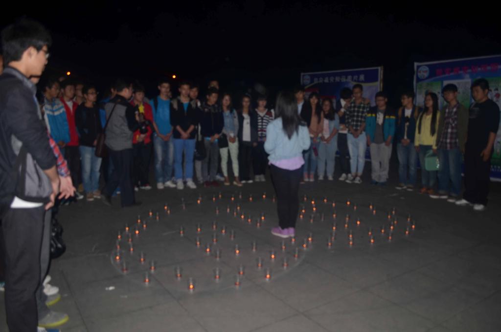 晚上8点,同学们聚集在实验楼广场前,用白色蜡烛摆成“512”字样,围绕以心形图案,寓意着我校学子心系灾区。随后,在四川籍学生的带领下,同学们举行了庄严肃穆的默哀仪式。仪式过后,同学们驻足观看了防灾减灾专题图片展,认真学习了防灾减灾知识。