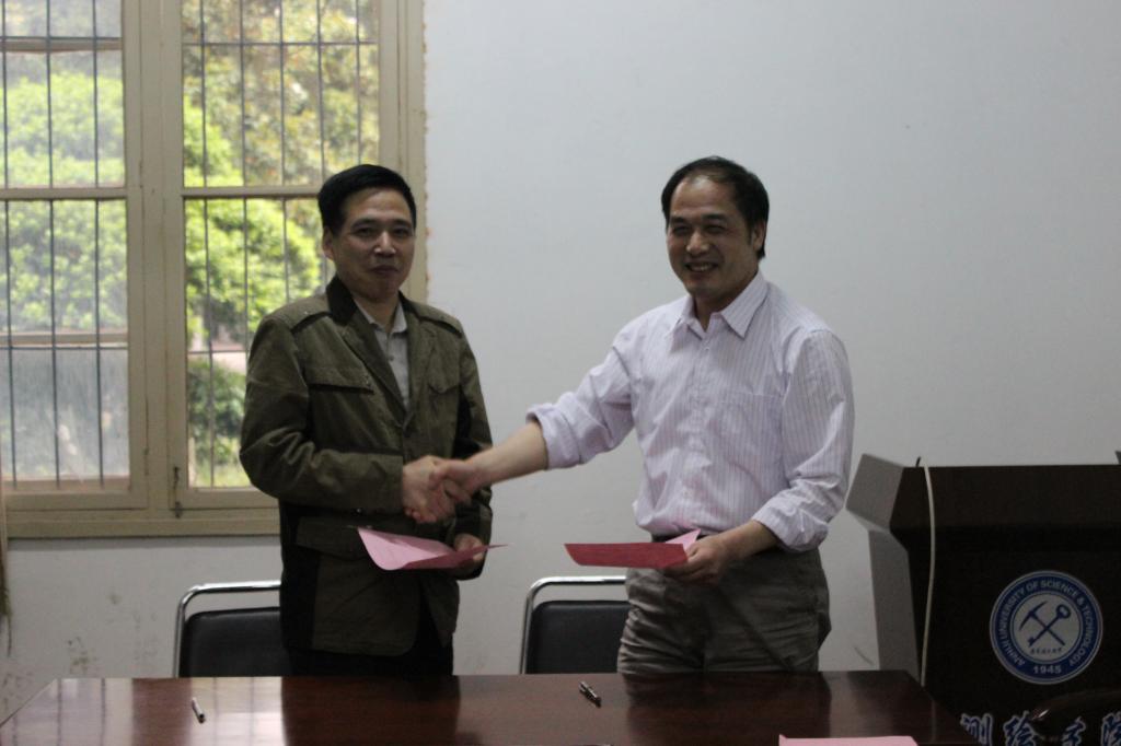 学院党委书记兼院长陈艺与测绘工程系系主任王列平签订协议书