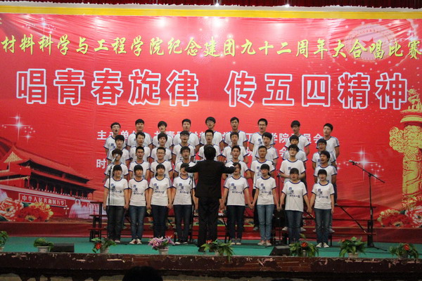 5月17日晚上7点,材料科学与工程学院在北校区大学生活动中心举办了以“唱青春旋律 传五四精神”为主题的纪念建团92周年大合唱比赛。材料学院党委书记何昌珏、副院长叶良彪、学生处副处长黄晟、校团委副书记彭晶以及学院部分老师出席了本次活动并担任评委,学院2013级全体同学以班级为单位参加了本次比赛。