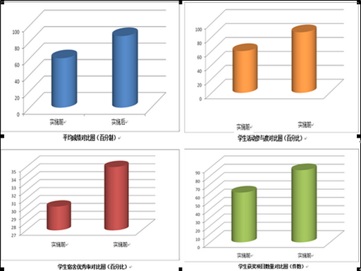 从图表中我们可以发现,发展性心理辅导在实施前后,不管是学生的平时成绩,还是学生活动参与度、获奖项目、宿舍优秀率都有显著的提高,证明发展性心理辅导在很大程度上调动了学生的积极性,具有较强的导向作用,具有推广的价值。