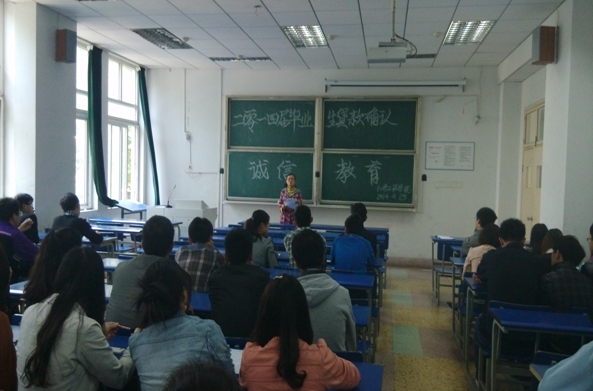 今年,全院将有580余名毕业生,为使他们走入社会后将厚德、诚信思想化为实践,更好地践行社会主义核心价值观,5月12-15日,学院16个班级分别召开“诚信立身,文明毕业”主题班会。班委会上,辅导员与他们分享了秦朝季布“一诺千金”的故事、北宋词人晏殊因诚信被宋真宗重用、立木为信与烽火戏诸候等历史故事,教育他们在校园里要诚信,走入社会更要诚信,不仅要做诚信的传达者,还要做行动者,以诚交往,以信立身,用自己的行动维护诚信之风。