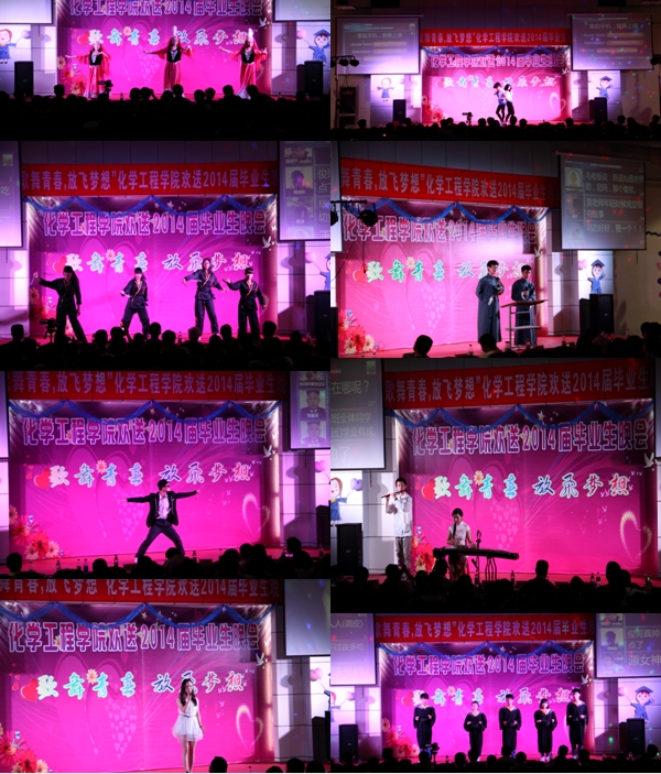 忆峥嵘岁月,莘莘学子竞风流;望未来苍穹,青葱校园谱成就。本次晚会,展现了化工学子的青春与朝气、积累与沉淀,为同学们搭建了展示才艺的舞台,为毕业生提供了一次师生联欢的机会,彰显了浓浓母校情。化工学院580余名2014届毕业生将踏上新的征程,追求他们的梦想,祝愿他们在今后的人生道路上工作顺利、事业有成、生活幸福、一帆风顺。