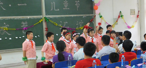 当参观校园结束以后,志愿者们带领小朋友们来到2号教学,为小朋友们举办了一场丰富多彩的迎接六一“中国梦,我们在同一片蓝天下飞翔”的文艺汇演。一开场活力四射的街舞就以高难度的花式动作赢得了小朋友们的满堂喝彩。魔术表演吸引着孩子们好奇的目光,悠扬清远的古筝声回荡在耳畔。同时,孩子们也给大家带来了歌舞表演,清脆的嗓音,活泼俏皮的动作,掌声也一次高过一次。