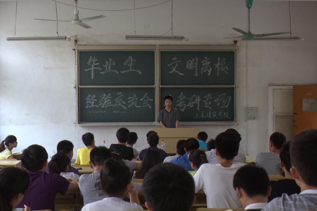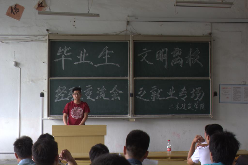为倡导我院2014届毕业生文明离校,为备战考研、准备就业的2015届同学答疑解惑,分享经验,6月5日下午,土木建筑学院在合班楼202教室、308教室分别召开了考研经验交流会和就业经验交流会。学院各年级辅导员、学生代表200余人参加了交流会。