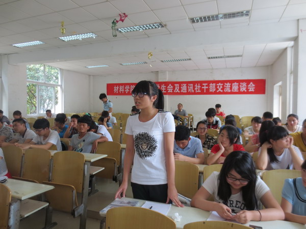 6月10日下午,材料科学与工程学院在北区3108教室举办了优秀学生干部交流座谈会。学院上一届学生会主席杨冬冬、通讯社社长王安等五位优秀学生干部应邀参加,学生会、通讯社所有现任学生干部参加了座谈。