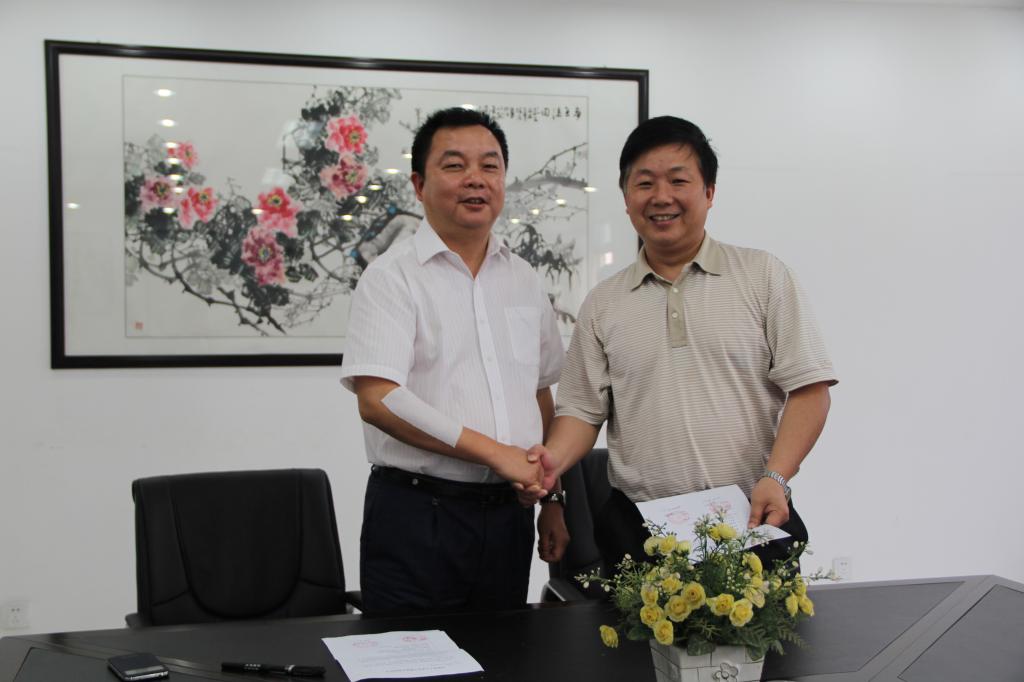 在会议上,经来旺首先感谢企业对理学院一行人员的热情接待,并详细介绍了理学院的专业设置、学科建设、人才培养等方面的情况,并就合作模式、合作内容、实习生管理等方面与张劲松等企业代表进行洽谈。双方本着平等协商、相互协作的原则,以实现互惠互利、共同发展为目标。经过洽谈,经来旺与张劲松分别代表理学院和企业签订了大学生实习基地共建协议书。