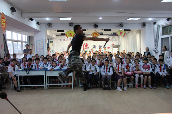 急救知识宣讲结束后,同学们还带来了文艺节目,精彩的军体拳、双节棍和民族舞赢得小学生阵阵热烈的掌声。最后毕业生将自制3个急救小药箱作为礼物赠送给小学生班级。整个活动过程中,毕业生们受到了十八小师生的热情接待,李丽老师表示,这堂课很实用,在今后的生活中遇见意外伤害时,可以进行紧急的简单救护,更好地救助突发事件现场的伤者。