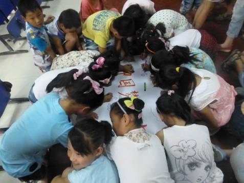 活动现场,志愿者和小朋友们一起在卡片上写下了自己的心愿,并将一张张五颜六色的卡片亲手粘贴在美丽的梦想墙上。随后,志愿者在图纸上写上“爱心播种希望”、“中国梦,少年梦”。小朋友们拿起画笔,发挥自己的想象,用生动的花草树木画出了自己对生活的渴望,表达了自己内心的梦想。