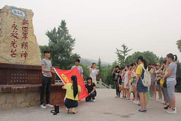 在新四军纪念碑前,大家重温入团誓词,承诺继承铁军精神,践行核心价值。赵东祥也寄语同学,学习历史、铭记历史,积极践行社会主义核心价值观,把“新四军”精神转化为学习动力,加强学习积累,强化技能锻炼,为实现中华民族伟大复兴的“中国梦”而努力。