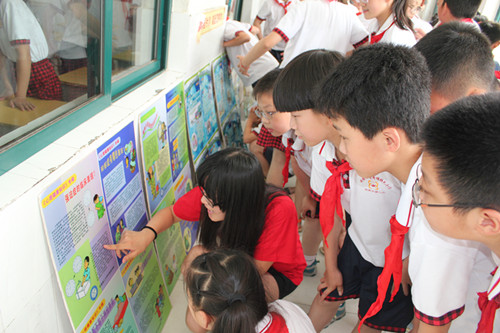志愿者们还对小朋友们开展安全知识宣传,展出安全知识宣传展板,让孩子们对地震、火灾等紧急事件有所了解并学习如何快速逃生,保护自己。