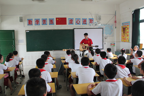 民族舞蹈《彩云之南》、现代舞《BOOM》、吉他独唱《童年》、葫芦丝独奏《月光》、男生独唱《祖国在我心中》等节目,赢得小朋们的青睐,也活跃了现场气氛,歌声、掌声、欢笑声在教室里久久回荡。在文艺演出之后,志愿者们开展“爱心圆梦”微梦想征集活动,他们对小朋友的小小梦想进行了收集,能即时实现的当场帮小朋友们实现,现场不能实现的,则带回学院,由其他志愿者一起,通过各种途径帮助孩子们实现,圆他们心中的小小梦想。