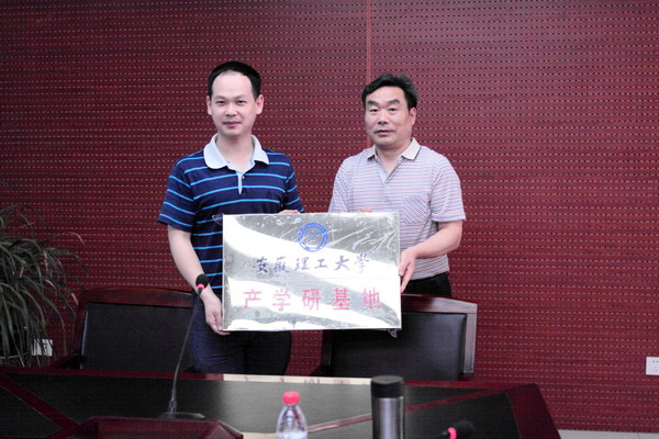 经过前期协商与筹备,7月2日上午,安徽理工大学与安徽凤阳玻璃有限公司“产学研基地”签约授牌仪式在安徽凤阳玻璃有限公司会议室举行。校实验室与设备管理处处长苏嘉银、材料科学与工程学院院长朱金波、安徽凤阳玻璃有限公司总工程师兼副总经理朱海勇、副总经理吴新建等出席了签约仪式。仪式由安徽凤阳玻璃有限公司企业管理部部长张波主持。