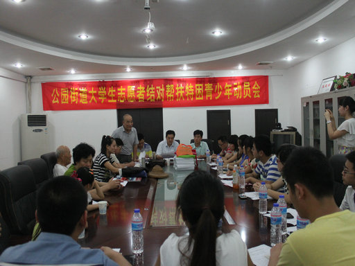 7月7日下午3点,经济与管理学院携手公园街道在公园街道4楼会议室举办公园街道大学生志愿者结对帮扶特困青少年动员会。