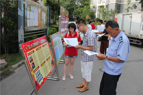 活动前夕,志愿者们主动进行十八大精神、十八届三中全会精神和社会主义核心价值观等知识的学习,多处搜集相关材料,对宣传板和宣传单的内容进行精心策划。活动中,志愿者们走进社区,为居民发放“党的十八届三中全会精神”的宣传讲义,并作细致的宣传讲解。有些年纪较大的居民对宣传的内容不理解,志愿者们热情地将他们带到宣传展板前,为他们讲解展板上的内容以及所要体现的精神;有的志愿者则向社区的老党员交流社会主义核心价值观的学习体会,就如何践行社会主义核心价值观进行了讨论与分享。志愿者代表倪健同学还就社会主义核心价值体系的具体内容、深刻内涵和基本要求等向大家作了重点介绍。在活动的过程中社区群众能够积极参与,与同学们交流,整个活动过程氛围愉快。