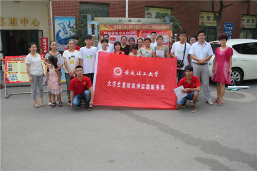 7月8日,外国语学院三下乡活动小组——理论政策宣讲团来到淮南市谢家集区唐山镇的卧龙社区,向社区居民宣传十八届三中全会重要精神和社会主义核心价值观。学院教学秘书、谢家集区挂职团委副书记李争和院团委书记张学森参加此次活动。