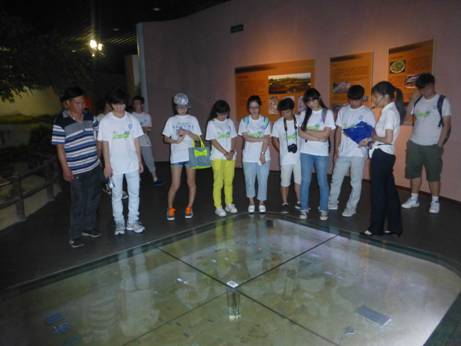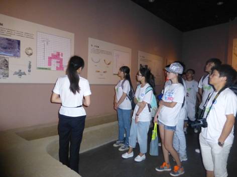 在博物馆讲解员的带领下,志愿者对博物馆进行了参观,详细了解了含山县的发展历史和文化渊源。博物馆以介绍历史遗迹为主,其中主要是凌家滩遗址的几次发掘。一层是凌家滩遗址的早期发掘,陈列了各种石器,玉雕以及模型,详细展现了早期原始的文明曙光;二层是后期的凌家滩发掘成果,主要有瓷器,石器,玉雕等。博物馆更是以虚拟科技辅佐,详细介绍了史前人们的生活。凌家滩出土的最具代表性文物,如玉龙、玉人、玉鹰、玉猪、石钻等表现了古凌家滩博大精深的瞳文化内涵。