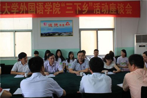 7月9日上午,外国语学院党委书记石秀光、院长束学军、校团委副书记彭晶、院党委副书记程秀霞率学院大学生暑期社会实践队奔赴淮北市濉溪县,开展暑期社会实践活动,并在当地建立一个大学生就业创业基地、一个大学生社会实践基地。