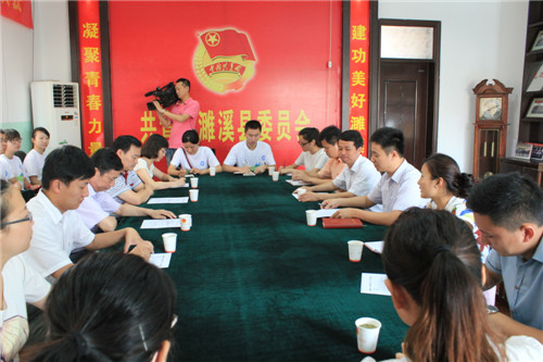 上午9时30分,实践服务队到达濉溪县,受到团濉溪县委书记聂颖、副书记梁文龙和任影,濉溪县安监局副局长朱洁等领导的热情接待。聂颖首先向服务队的到来表示热烈的欢迎,并简要介绍了濉溪县经济、文化发展现状,从思想引领、青年就业创业、志愿服务等方面重点介绍了濉溪县团委工作开展情况。