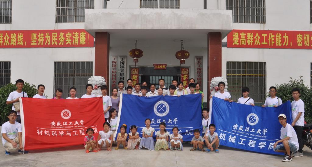 为切实学习宣传贯彻习近平总书记系列重要讲话和五四重要讲话精神,7月10-12日,材料科学与工程学院、化学工程学院、机械工程学院联合组成2014年暑期大学生“三下乡”社会实践团队,专程赴池州市青阳县丁桥镇开展系列实践活动,关爱农村留守儿童和空巢老人,调查美好乡村和生态文明建设情况,考察联系就业工作,并建立大学生社会实践基地。