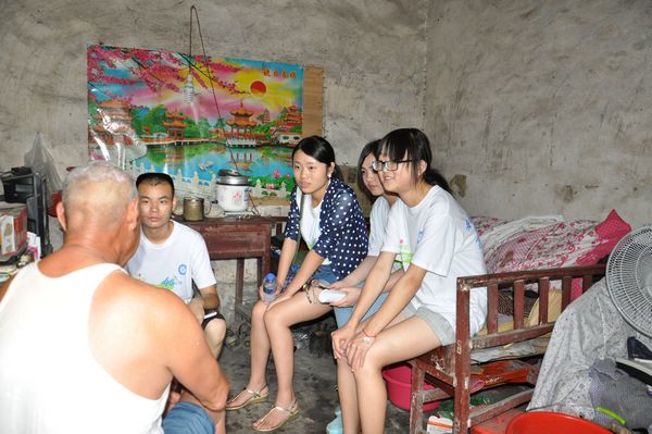 3时40分,小雨打湿了志愿者们的衣袖和裤腿,但丝毫没有影响志愿者看望老人的决心。在张楼村村长和八小校长的带领下,志愿者们走过一段泥泞的小路,来到老人居住的旧屋前,屋内面积大约只有5、6平米,唯一一扇窗户也被水泥封了起来,而老人也已经在这里住了几十年。看到志愿者的到来,张庆雨老人缓缓地一瘸一拐从屋内迎来。据悉老人今年已经69岁,患有脑梗塞,并且腿部肌肉萎缩,从聊天中了解到老人眼睛也看不清,凭五保补助的四五百元维持生计,屋内没有安上自来水,平时老人都需要去井边打水,由于身体残疾,一桶水需要分多次取满,而不能出门的限制,也让老人只能靠一台破旧的电视提供些许娱乐。当志愿者们和老人聊及生活上的情况时,老人抹着湿润的眼眶,颤抖的声音里透露出生活的无助。老人无子无女,平日里没有人探望,生病只能自己就医,拮据的生活和精神上的孤独让老人看起来愈发消瘦。在志愿者即将返程时,老人一句微弱的谢谢你们让志愿者们眼眶红润。