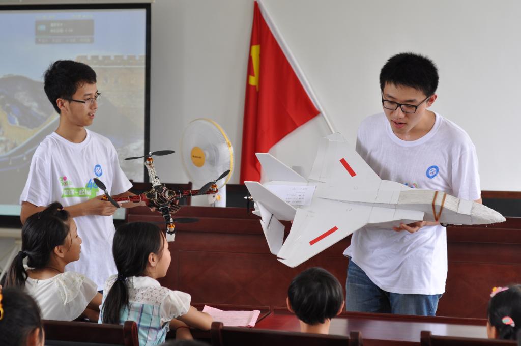 随后,教育帮扶团队为小朋友们送上精彩的文艺表演与航模科普知识。虽然天气潮湿闷热,但大家顾不上休息调整,文艺活动精彩纷呈,科普介绍深入浅出,为小朋友送上了一份难得的暑期文艺、科普大餐。