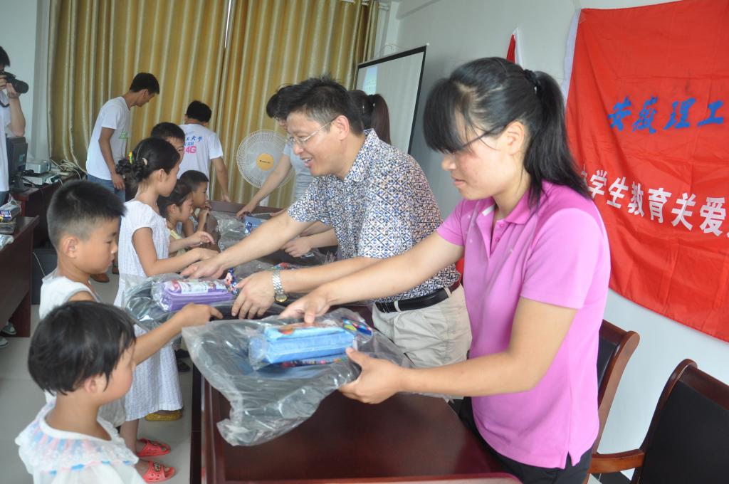 为切实从物质、精神上全面关爱农村留守儿童,7月11日,材料科学与工程学院、化学工程学院、机械工程学院联合组成2014年暑期大学生“三下乡”教育帮扶团队,赴池州市青阳县丁桥镇天平村开展系列慰问帮扶活动,为那里的留守儿童送去学习用品和文艺慰问演出,为孩子们普及人身安全常识和航模科普知识,并建立三学院联合社会实践基地。