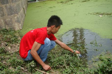 在淮南,志愿者们对淮河淮南饮用水源区——李咀孜上1km至姚家湾上游水质污染情况进行了检测。此次活动得到了我院环境系老师王兴明博士的技术指导。在颖上,志愿者们实地观察了颖河水质状况,采集水样,进行检测,初步了解水质状况。虽然天空烈日炎炎、河边杂草丛生、河床泥泞难走,但志愿者依然坚持着,手牵手艰难地到达目的地,并圆满完成了水质调研活动。在调研过程中志愿者还发现一些比较严重的污染情况,同学们对其进行重点关注,积极记录并将向有关部门反映情况。