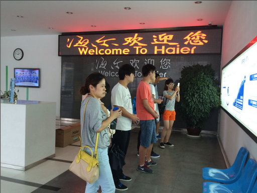 参观中,同学们进一步了解海尔现有三大品牌,亲身体验N屏互动、无尾家电等系列科技产品,体验未来生活,对海尔“走出去、走进去、走上去”的三步走发展战略有了更加深刻的认知,针对海尔提出的“人单合一双赢管理模式”和“日清日高管理法”进行了热烈的讨论,同时也对海尔博大厚重的企业文化有了更深层次的感悟。