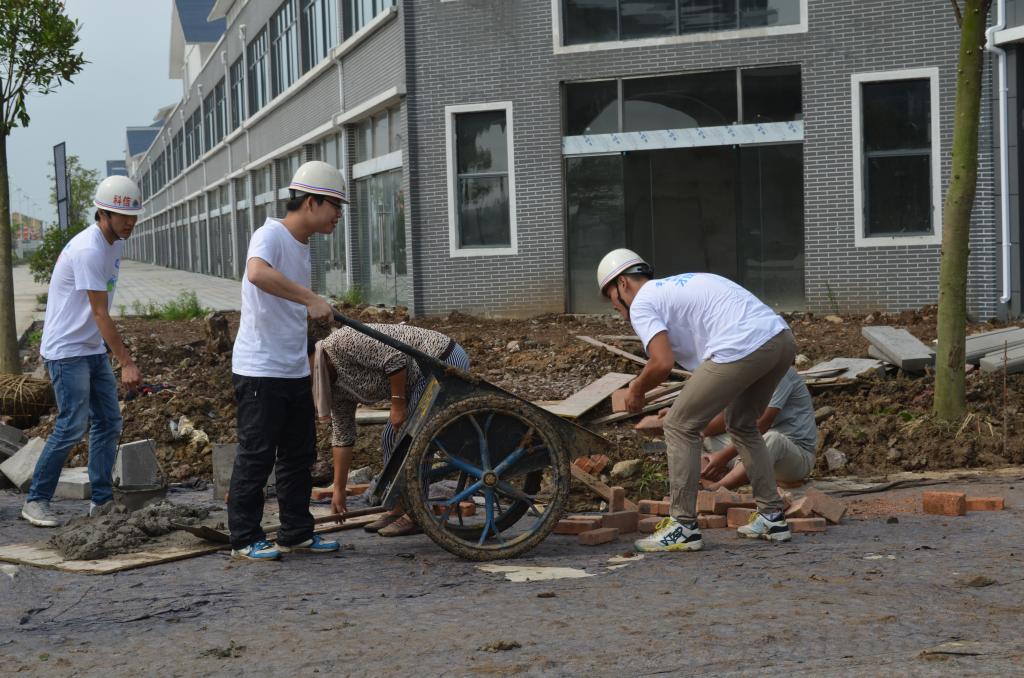 在当地干部的带领下,实践团队员们参观了新农村建设的成果和现状,面对一幢幢干净整洁的村舍,同学们深刻体会到了新农村建设的飞速发展,村民们生活水平的提高,国家惠农政策对农村的积极影响。在施工现场,同学们不怕脏不怕累,积极投身劳动锻炼,展现了安理学子良好的精神面貌。