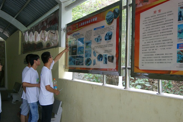 实践团队员们在淮北市相山公园内的防空洞前接受人民防空教育。通过教育帮助队员们普及防空知识,增强自我保护意识,提升自救能力,了解救助技巧。