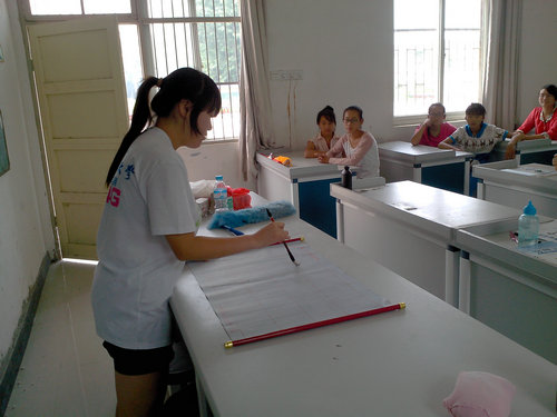 本次支教活动共有10名志愿者参与,每个同学都认真准备,把自己的所知所学传授给学生们,被帮扶的学生来自当地的小学和中学,他们对大学生活有着美好的期望,我们的志愿者们带着他们通过上课、素质拓展,了解如何成长为一个合格的大学生。志愿者们发挥自身的优势,分别承担了不同科目的教学工作,每天晚上都备课很晚,为了节省开支,队员们自己做饭,在炎热的夏季并无一丝抱怨,把乐观奋斗的精神也传递给了孩子们。